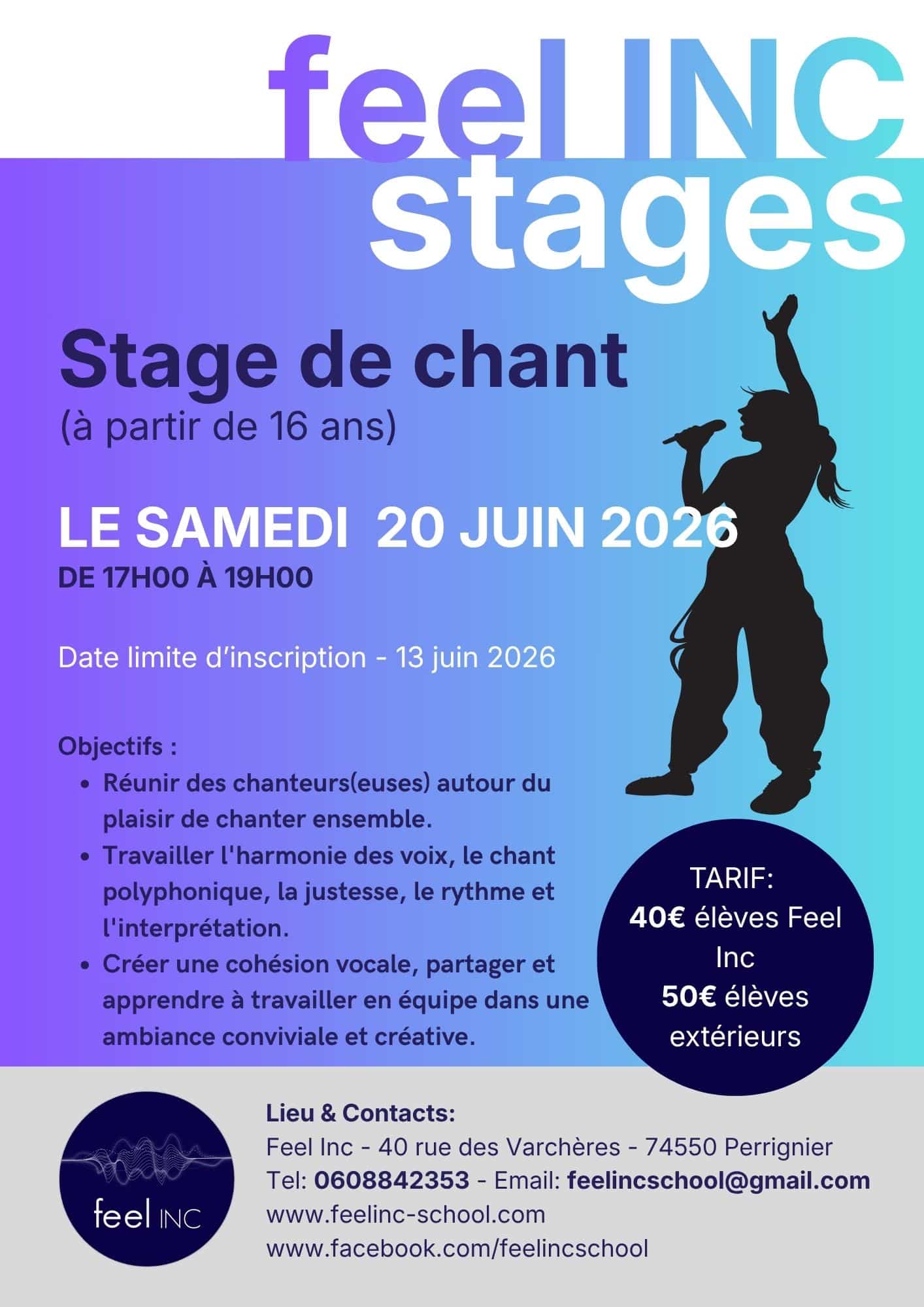 Feel inc a le plaisir de vous inviter à son concert de fin d’année scolaire, le samedi 23 mai dès 19H à la salle des fêtes de Perrignier.